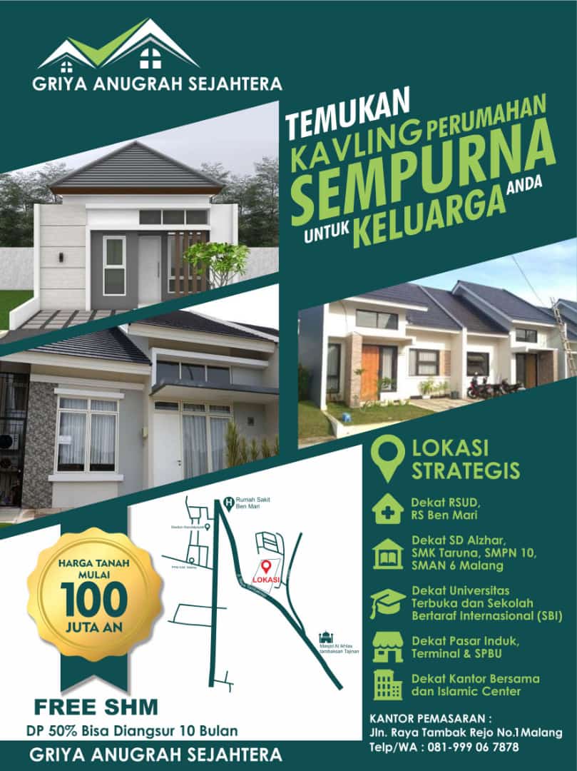 Malang,BeritaAntara.com -Griya Anugrah Sejahterah (GAS) meluncurkan penjualan tanah kavling murah pada akhir tahun 2023 di kota malang tepatnya di jln.Raya Tambak Rejo no 1 Malang. Tanah kavling yang dijual dengan dua grade tersebut terdiri dari grade A & grade B yang terletak di poros utama jalan provinsi tepatnya Dekat dengan Rumah sakit Ben Mari dan fasilitas umum lainnya.