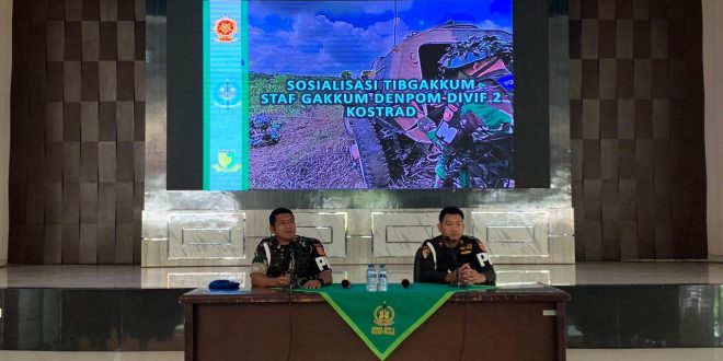 Malang,BeritaAntara.Com – Detasemen Polisi Militer (Denpom) Divisi Infanteri 2 Kostrad melaksanakan sosialisasi Penertiban dan Penegakan Hukum di Gedung Sandoyo Divif 2 Kostrad. Kegiatan ini diikuti oleh seluruh unsur prajurit satuan jajaran Divif 2 Kostrad mulai dari Denma, Denhub, Denpal, hingga Ajen Divif 2 Kostrad. (Singosari, 6 April 2026)