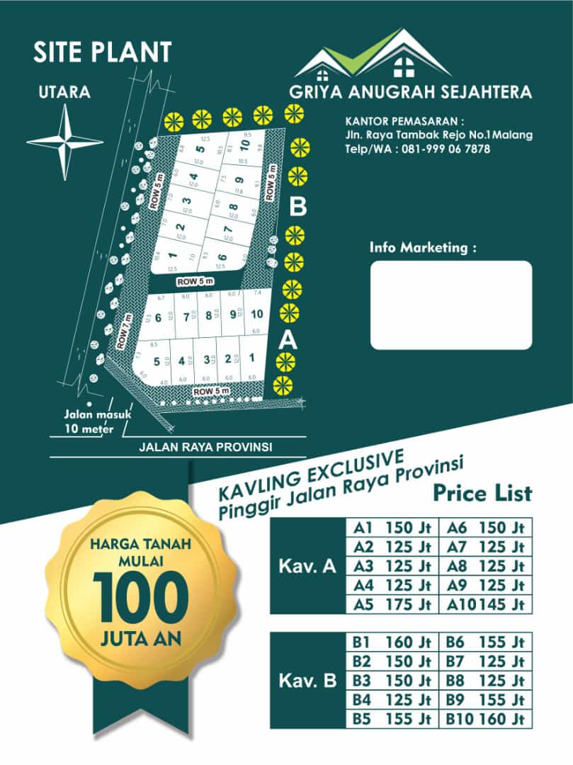 Malang,BeritaAntara.com -Griya Anugrah Sejahterah (GAS) meluncurkan penjualan tanah kavling murah pada akhir tahun 2023 di kota malang tepatnya di jln.Raya Tambak Rejo no 1 Malang. Tanah kavling yang dijual dengan dua grade tersebut terdiri dari grade A & grade B yang terletak di poros utama jalan provinsi tepatnya Dekat dengan Rumah sakit Ben Mari dan fasilitas umum lainnya.