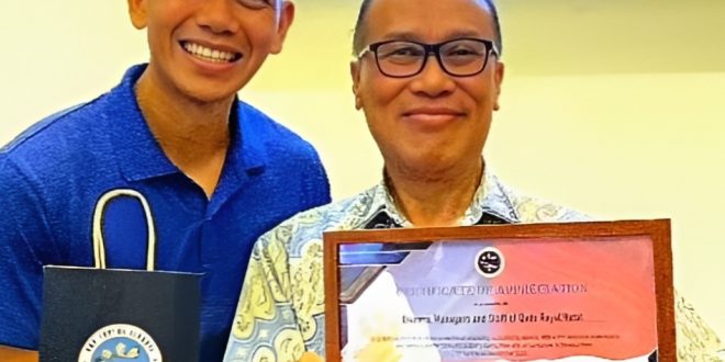 Surabaya,BeritaAntara.Com– Momen penuh sejarah terjadi ketika Ken Ricardo Jumawan, Komandan Pendukung Kapal Perang Filipina BRP Tarlac 601menyerahkan plakat penghargaan Outstanding Service Award kepada jajaran Direksi, Manajemen dan Karyawan Hotel Quds Royal Surabaya minggu lalu (26/9/2025) di Restoran Delima.