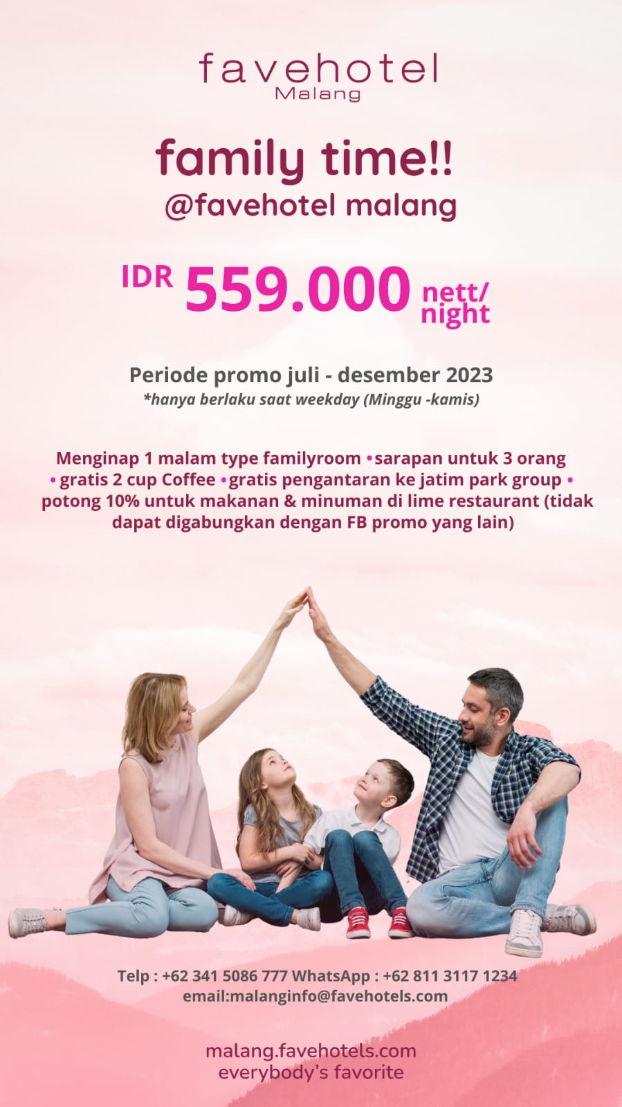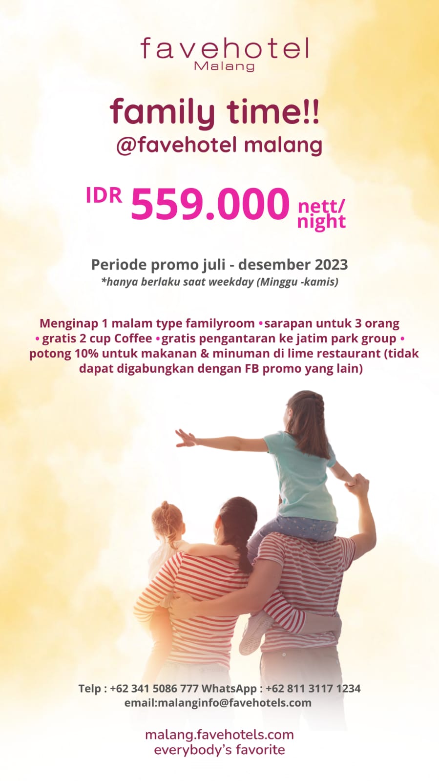 “Yang membedakan fave family Room dengan kamar-kamar kami sebelumnya adalah favefamily room berkapasitaskan untuk 3 orang dan sudah termasuk 3 pax breakfast,” paparnya.