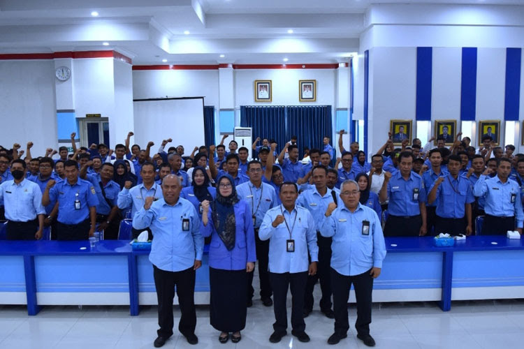 Seluruh pegawai bertatap muka langsung dengan Direktur Utama Perumda Tirta Kanjuruhan H Syamsul Hadi, S.Sos, MM, didampingi Direktur Umum Tutik Wadjawati, SE, dan Direktur Teknik Ir M Haris Fadilah serta Kepala Satuan Pengawas Internal M Ikhwan, S.Ab.