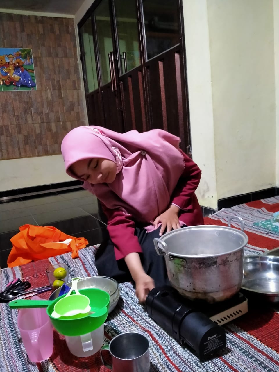 Pembuatan hand sanitizer ini dilaksanakan pada hari sabtu tanggal 29 Agustus 2020 pukul 19.00 WIB di salah satu rumah anggota dasawisma RT.2 dusun sempu, tepatnya di rumah Bu Anis (Ibu Kepala Dusun Sempu). Kegiatan ini merupakan kegiatan mingguan yang mereka lakukan dan dihadiri 15 anggota dasawisma RT.2 Dusun Sempu.